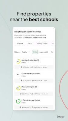 Buy.ca provides school scores, enabling you to find homes near highly-rated schools based on performance metrics.