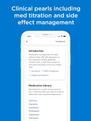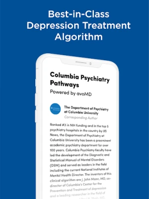 Designed by expert psychiatrists from Columbia University and delivered via cutting edge, interactive technology from avoMD, this evidence-based app provides a practical, easy-to-use treatment algorithm for major depression.