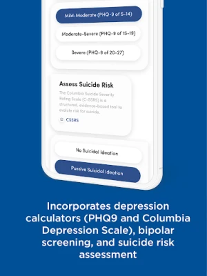 • Measure symptom severity using built-in calculators for Patient Health Questionnaire-9 item (PHQ-9) and the Columbia Depression Scale
