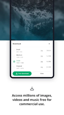 + Direct Download: Find the perfect image, video or music track for your project and download or share it from the mobile app.