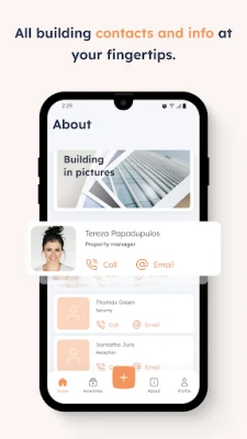 This application is intended not only for employees that work in RESOURCE, but for their visitors as well. Important information about the building is organized on the dashboard, which dynamically changes throughout the day. The app offers more functionality including forums, ability to request maintenance, events, information about companies in the building and about the building itself where you can find important contact, guides and documents.