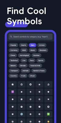 Stop searching for the perfect **stylish text** or unique **special characters**. The **Symbol Finder App** is the ultimate, all-in-one **Username Generator** designed to elevate your online presence, whether you're creating a memorable **Gamer Name** or crafting an eye-catching social media bio. We eliminate the frustration of disorganized symbol libraries with powerful search tools and a vast, constantly updated collection of **Unicode symbols** and **cool fonts art**. Get ready to copy, paste, and dominate your digital world.