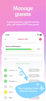Import guests from your contacts and manage their RSVP’s. Wedding planning is easier when you have a convenient guest list, isn’t it?